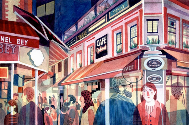 Nerede yaşadığımızı unutuyoruz. Zaman geçiyor ve etrafımıza alışıyoruz. O etraf da İstanbul gibi haddinden fazla kuvvetli bir şehir olunca sağlamamız gereken uyumun seviyesi de alışmanın eşiği kadar yüksek olabiliyor. Şehrin kendi içinde dolaşan parçaları, sokakların hayaletleri hâline geliyoruz. Kulağa pek hoş gelmiyor ancak durum bu kadar acıklı değil, İstanbul sakinleri olarak bunu biliyoruz. Yine de sokaklarda dolaşırken hissediyoruz. Burada bir şeyler var. O şeyleri Kadıköy sokaklarında bulan Alman illüstratör Eva Feuchter, gördüklerini hatırlamak için yaptığı çizimleri maviblau.com için derlemiş.